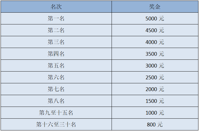 3、跑团PK赛:马拉松跑团PK赛以赛事当天每个跑团半程最快10人(至少2名女选手)净成绩时间累计相加为跑团最终成绩,按排名顺序录取前三十名给予奖励。(奖金额见下表,单位:人民币,税前)