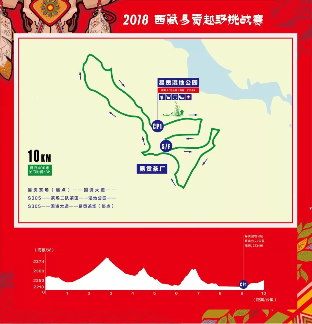 (2)10公里徒步健身跑线路与40公里组前面10公里重合一起,线路涵盖易贡湖、易贡湿地公园,累计爬升400米+。