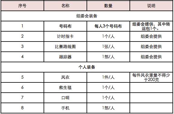 (一)装备清单(所有装备需全程携带):
