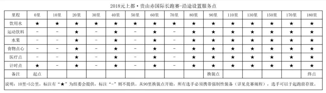 6.180里贵由赤参赛者可在90里服务点(换装点)寄存一个换装包,选手换装的后的物品组委会将在服务点关门后运至比赛终点。