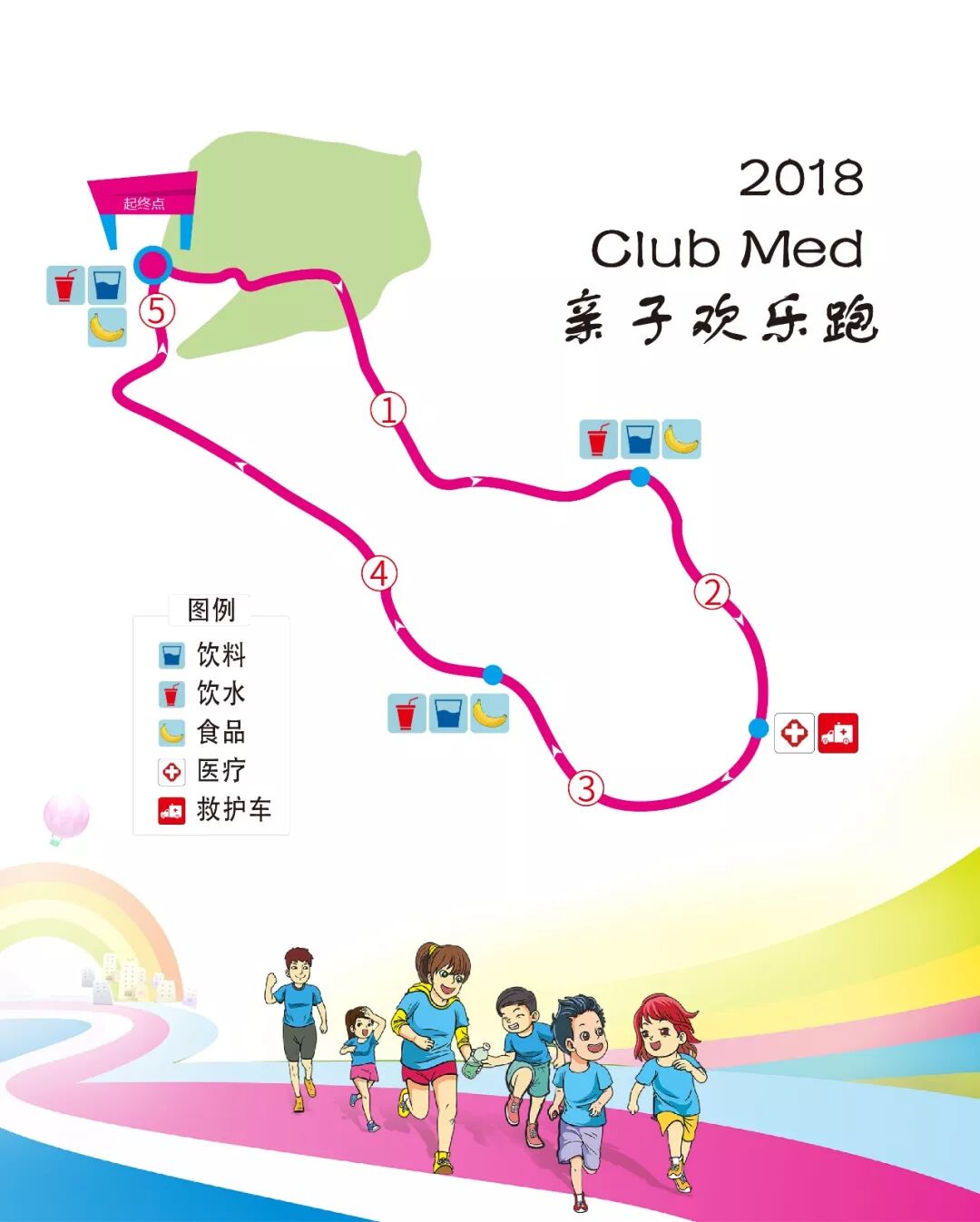 本次活动不计名次,每个家庭在到达终点冲线时需携手共同冲线,完赛家庭将每人获得完赛纪念奖牌一枚。