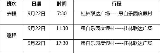 本次活动将为选手提供从桂林市区往返愚自乐园度假村的免费接驳班车,具体信息如下: