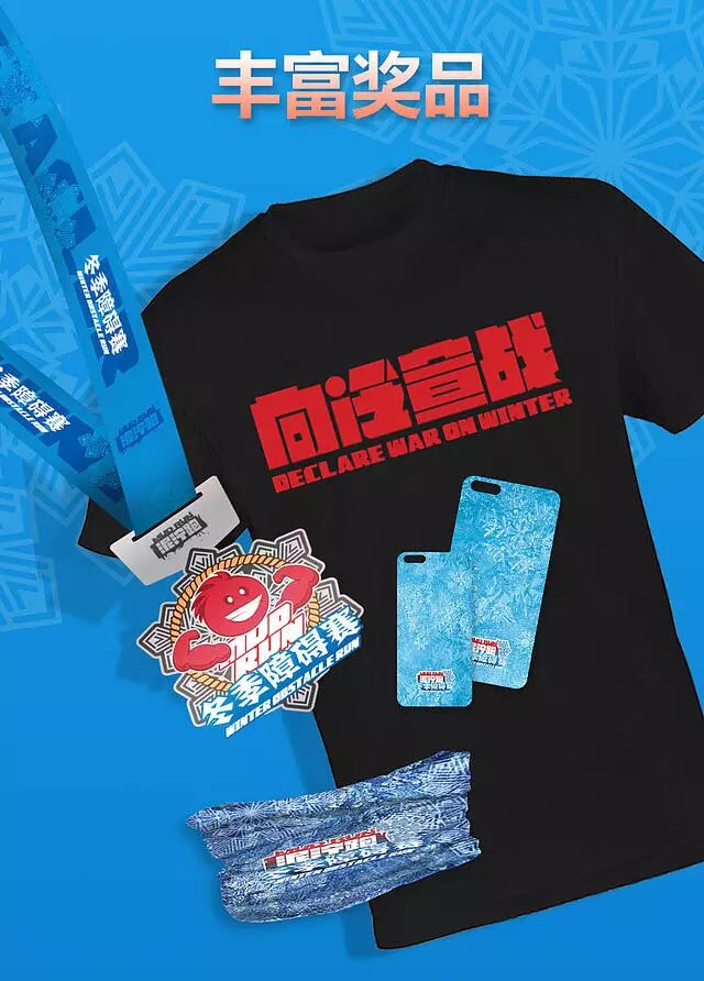 完赛T恤、完赛奖牌、泥泞跑手机壳、运动头巾。